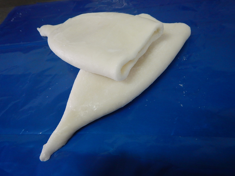原料我們可以生產加工出魷魚筒,具體規格可以分為U5 U7 U10(U5的意思是每kg魷魚筒的條數是5條)、魷魚圈、魷魚花、魷魚條、魷魚串、魷魚頭、魷魚耳、魷魚耳花、魷魚壓花片、二本足等系列產品